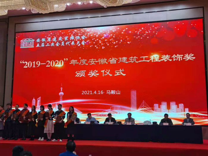 会议表彰了安徽省建筑装饰行业为抗击新冠肺炎疫情作出贡献的单位、安徽省建筑装饰行业参加扶贫献爱心单位,以及颁发“2019-2020”年度安徽省建筑工程装饰奖。安兴装饰公司凭借在抗疫和扶贫中的优异表现受到大会表彰,同时还荣获五项安徽省建筑工程装饰奖。